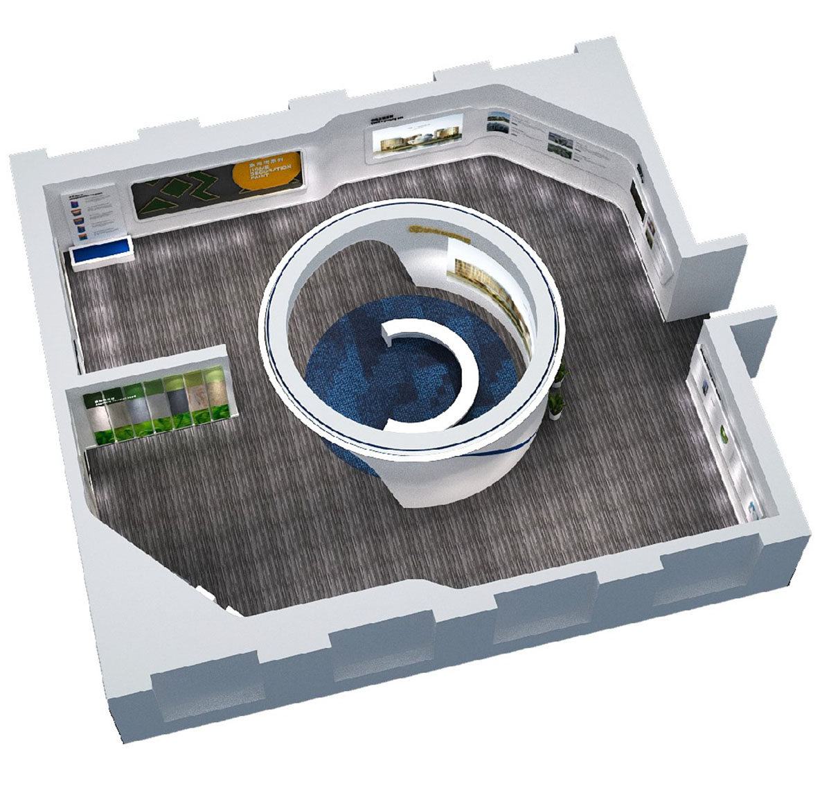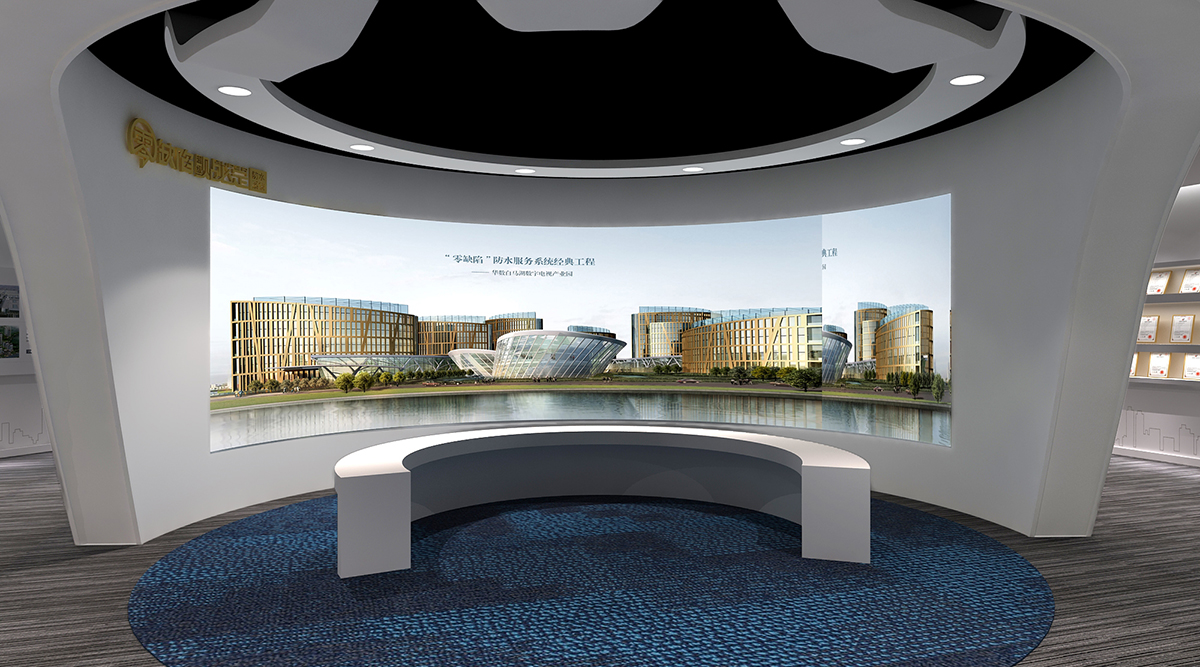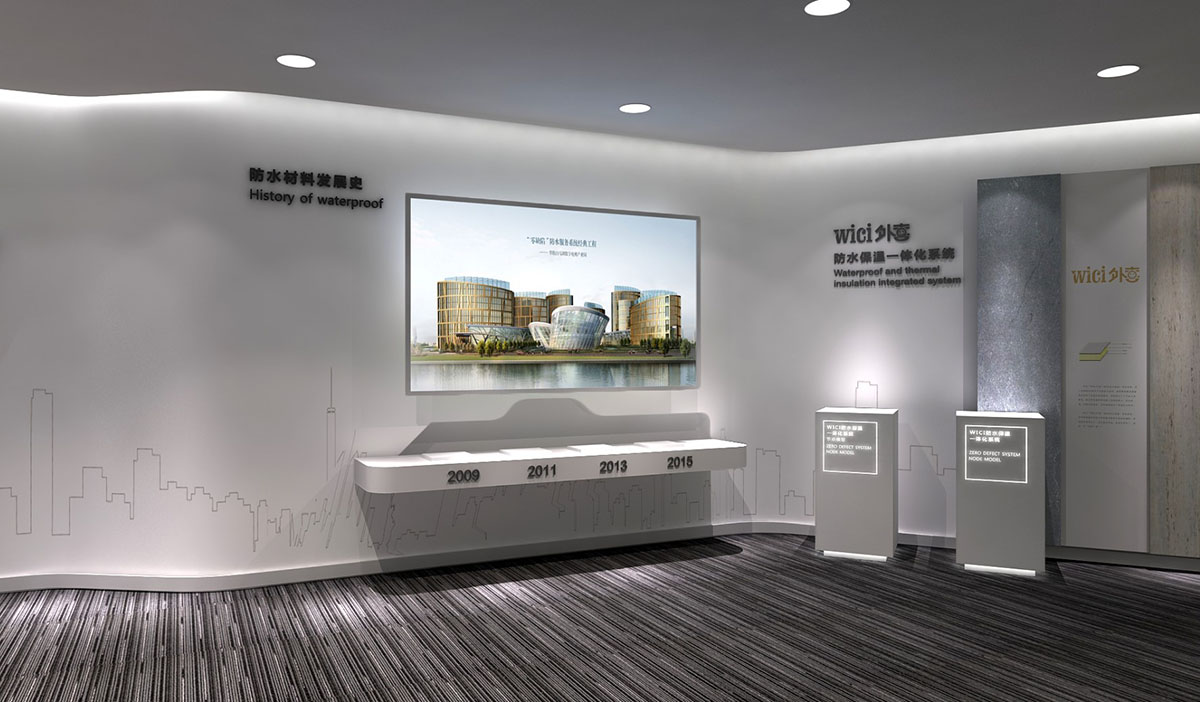 展展廳概念定位為“創(chuàng)新”通過對企業(yè)自身產(chǎn)品創(chuàng)新性的挖掘,運用創(chuàng)意與數(shù)字多媒體技術(shù)的結(jié)合,力圖給受眾詮釋行業(yè)創(chuàng)新技術(shù)帶來的防水革命,以及他在建筑防水行業(yè)的最具創(chuàng)新價值。